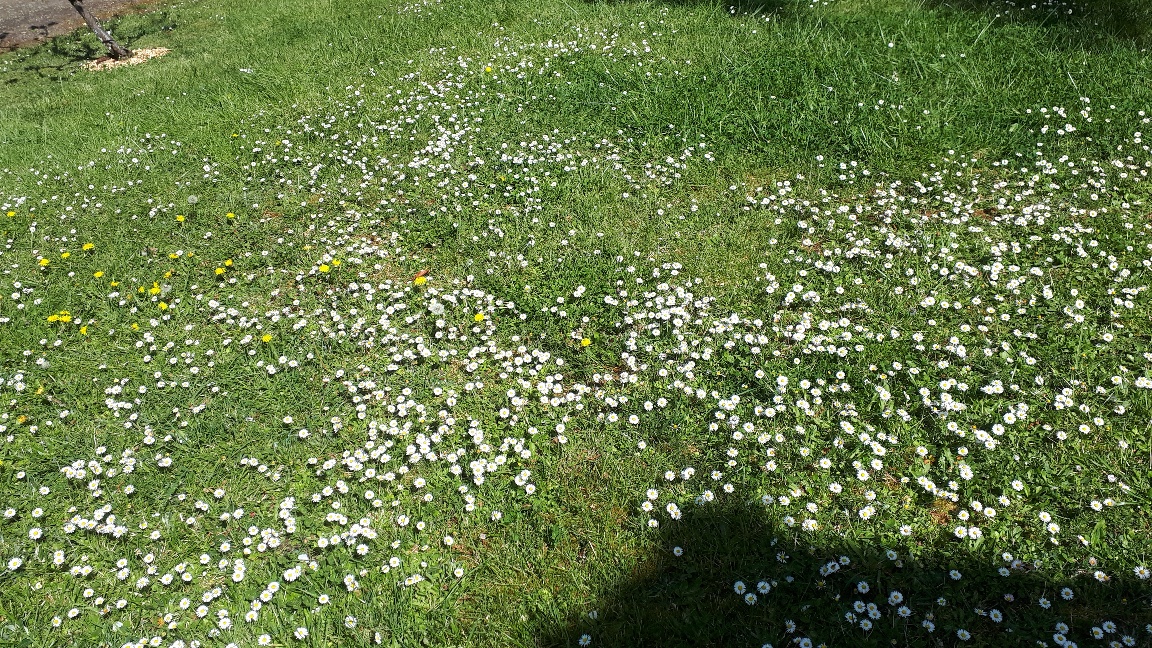 Bonjour les Copinettes Encore gelé ce matin, un temps sain c'est toujours ça et ça n'empêche pas les ballades bien couverte. BWA ma pelouse ressemble a la tienne toute piquée de pâquerettes. Bonne journée à vous toutes |