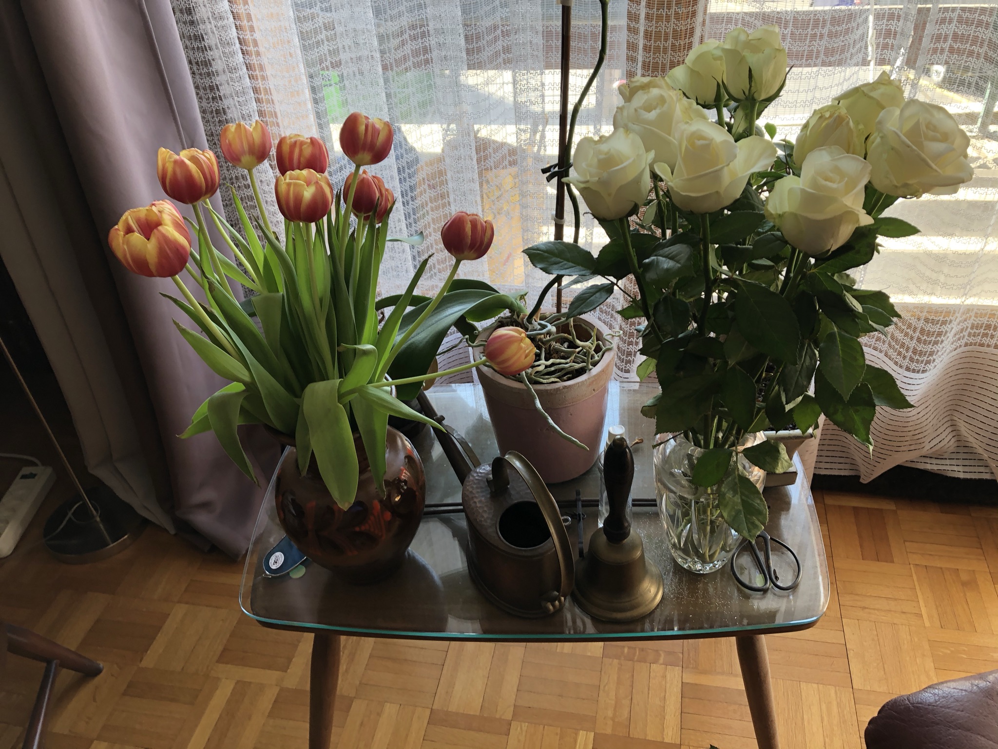 re coucou mounette en forme et matinal je viens d envoyer un SMS a mon beau frère c est son anniversaire et me dis bizarre personne lui souhaite et ça me fait tic suis tromper c est le 3 ce jour c aurait été mon mari chose d avoir été y mettre une coupe hier j ai eut du mal a trouver le sommeil donc ce matin dijoncter patchou est contente pas de jardinage pendant 4js le ciel n esqt pas bleu le discours de macron pour moi c est plutôt une sortie de déconfinement |