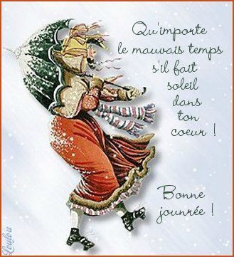 Pluie et grand vent. Je viens d'envoyer un message à Nouche pour pas que vous vous inquiétez, rien ne voulait s'inscrire et allez savoir pourquoi c'est revenu les caprices de ne l'électronique resteront un GRAND point d'interrogation pour moi. Pas trop déçu de me retrouver ?? Tant pire j'y suis je reste. Hi ! hi ! Didine ta nièce n'est pas prête d'en avoir fini avec la paperasse. Poutout à Hindie. Mana as-tu pu faire ta balade ? BWA pas de balade dans cet univers blanc patiente on ne sait jamais ça peut arriver. Pat je ne me fais pas trop de soucis pour ta Zou grâce à toi elle va retrouver du peps et ses batteries seront pleines quand elle repartira Coco en se qui concerne le 31 je me demande ce qui va encore passer par la tête de tous ces réfractaires ?????