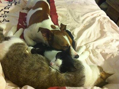 je vous met une photo de mes animaux malheureux cheeky coucher tous ensemble sur mon lit !!!