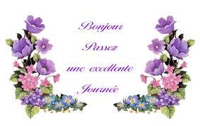 Bonjour à vous toutes, Je pars quelques jours près de Poitiers pour l'anniversaire de mon petit fils. Je vous souhaite une bonne fin de semaine et je vous dis à lundi.
