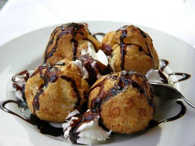 Dessert: profitéroles au chocolat mais j'ai pas pu finir