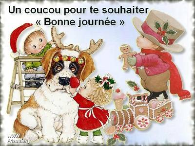 Bonjour à toutes je ne fais que passer en vitesse pour vous ouhaier un joyeux Noël J'espère qu'il sera pour vous plein d'affecton et de tendresse c'est plus important que le foie gras etla dindeMon séjour en savoie a été un peu dur car le temps était exécrable plui ,neige ,tempête ,j'en ai bien bavé sur les routes et j'ai eu bn froid!!!!Demain j'y repars (je suis à peine rentrée) pour Noël il y ara ma fill et ses 2 garçons et un beu-frère et une belle soeu Finissez bien vos préparatifs et passez un excellen week-end |