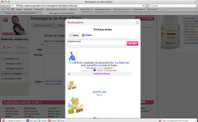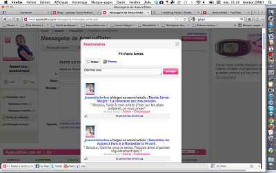 Bonjour bonjour:)) Je ne peux plus passer de message ni privé ni groupé depuis mon compte Aj free, que ça soit sur firefox, safari, google chrom, je suis obligé de me connecter depuis l'ordi de cyrille pour envoyer les messages urgents. Ci-joint la capture d'écran |