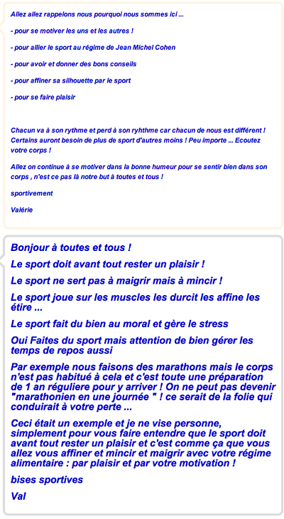 Mardi JMC BLOG : elle a perdu 5 kg elle veut en perdre 10 FORUM defi de janvier - 3 kg GROUPE le sport pour vous motiver |