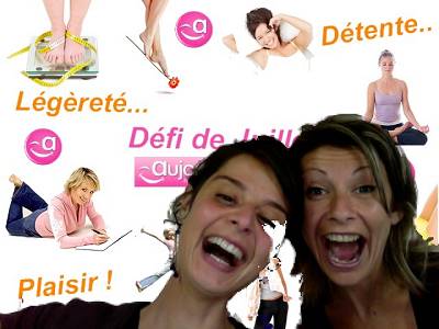 salut la team! c'est génial ce petit élan pour le défi! encore merci Cécile pour cette organisation, je m'y retrouve et c'est tout simplement trsè appréciable de pouvoir travailler dans ces conditions! voici un nouvel élan, qui vient même me chatouiller, et qui me donne envie de suivre le défi, c'est pas peu dire!!!!! hihi, changement d'avatars également, et juste pour le fun, après avoir vu la photo de Cécile, petit délire avec Anelor! alors bon mois de juillet à tous pour ce défi de juillet! byebye |