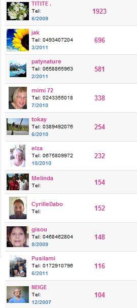 Comme convenu voici le tableaux du TOP 10 des plus actifs sur SM (j'aurais bientôt le TOP des autres programmes)