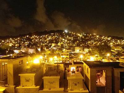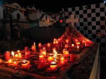 C'était la Toussaint, période souvent difficile pour ceux qui ont perdu un être cher. En Guadeloupe, la Toussaint est très fêtée. La semaine précédentle 1er, c'est la toilette des tombes. A l'entrée des cimetières, il y a des jeunes armés de brosses, seaux,savon, qui proposent leur service pour nettoyer les tombes.Les familles se réunissent souvent pour cette fête et, à la tombée de la nuit, chacun se rend au cimetiere, pour y déposer des bougies, sur les tombes familiales.Il y a aussi qq fleurs. A la sortie du cimetière, se trouvent les marchands ambulants, qui proposent : boissons, sandwichs,agoulous, bokits etc... On y rencontre des amis et on discute, sourit. La mort n'est pas un sujet triste ici. On dispose aussi des bougies sur sa terrasse, surtout si o ne peut se rendre sur la tombe des siens. A Marie-Galante, les morts ne sont fêtes que le 2 et ils ont raison car le 1er, c'est la fête de tous les saints. En conséquence, ici, dimanche et lundi sont fériés. Je vous mets la photo d'un cimetière à la Toussaint. |