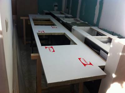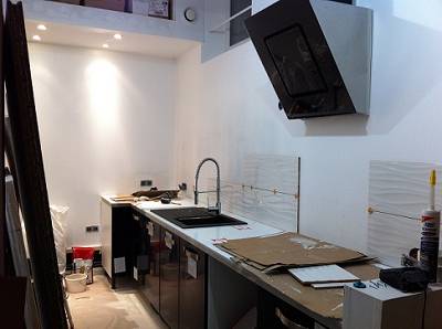. Aujourd'hui, Le plan de travail a été préparé pour recevoir l'évier et la plaque induction. C'est très lourd à bouger dans un petit espace. Je mettrai une photo finale....Un jour....Prochain... |
