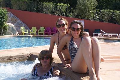 Bonjour les copines ! Il a plu ici, mais ce n'était pas comme chez toi Kesako. Par contre, hier nous avons conduit Flo à la gare de Sallanches. Elle a dû prendre le bus jusqu'à Annecy, puis, un arbre est tombé sur la voie entre Annecy et Lyon, elle a dû attendre 3 heures. Rebelote à Lyon, tous les trains avaient du retard. Là aussi elle attendu pour finalement prendre le dernier train pour Paris. Elle est arrivée chez elle à pas d'heure ! j'en saurai plus dans la journée car là, elle doit dormir. J'enfonce le clou ? Chiche ! A la piscine, aux bulles avec mes zoizettes !