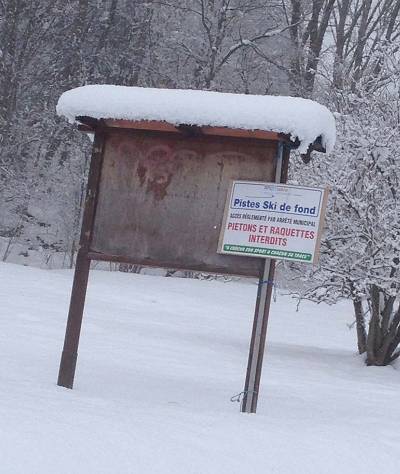 Voici la pancarte !!!! Il neige chez moi, finalement la neige nous a rattrapés !!! Pourquoi être allé si haut pour la chercher ... je me le demande ! MDR |