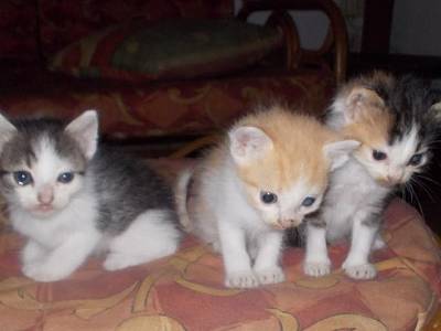 Je vous mets la photos des 3 châtons que mon second fils a eu. Il les aime tant qu'il ne veut pas les donner. Je les trouve mignons.