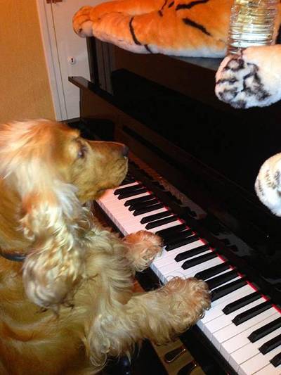 un couple d'amis m'a envoyé hier une photo de leur chien "Cockie", je partage avec vous car je la trouve très sympa..........un peu d'humour ne nous fera pas de mal......... |