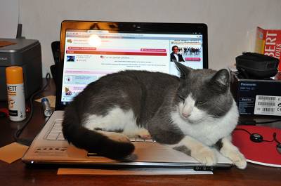 Je vous ai déjà parlé de mon chat "aga khan" qui dés que je me pose arrivait sur moi. Il y a une chose qu'il ne supporte pas c'est de me voir à l'ordi dés que j'y suis il arrive et se couche sur le clavier, je suis obligée de le chasser mais il revient et reste là jusqu'a ce que j'ai fini............il me fait rire il est si craquant......