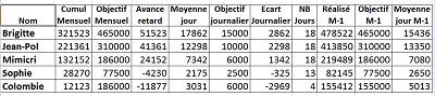 Bonjour, je ne vous oublie pas. j'ai copié de mon tableau excel mais résultat bizarre.