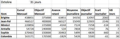 Bonjour, Merci Jean-pol pour les calculs. Pour le 31 octobre : 8562 pas et pour le 1er novembre: 15145 pas. Pour novembre, je remets un objectif à 8000pas/jour. A bientôt! |