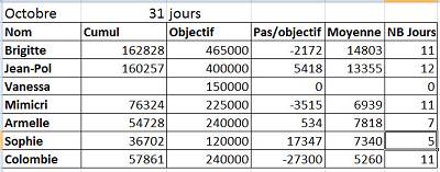 Bonjour, petite semaine mais je le savais d'avance. lundi 6: 4645, mardi 7:4152 mercredi 8: 2348 jeuidi 9: 2685, vendredi 10: 2006, samedi 11:3555. |