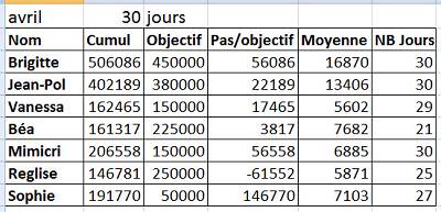 Plus que 3 jours avant la fin du mois, des très bons résultats dans l'ensemble avec Sophie qui fait son objectif en une seule journée |