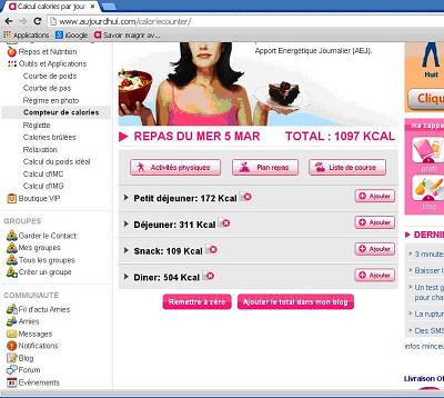 j'ai la réponse à mes questions : j'ai vu tout ça quand je me trouve sur la page "compteurs de calories"