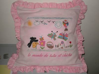 tres joli vos encours je vous presente le mien je vais faire un coussin d'apres un dessin